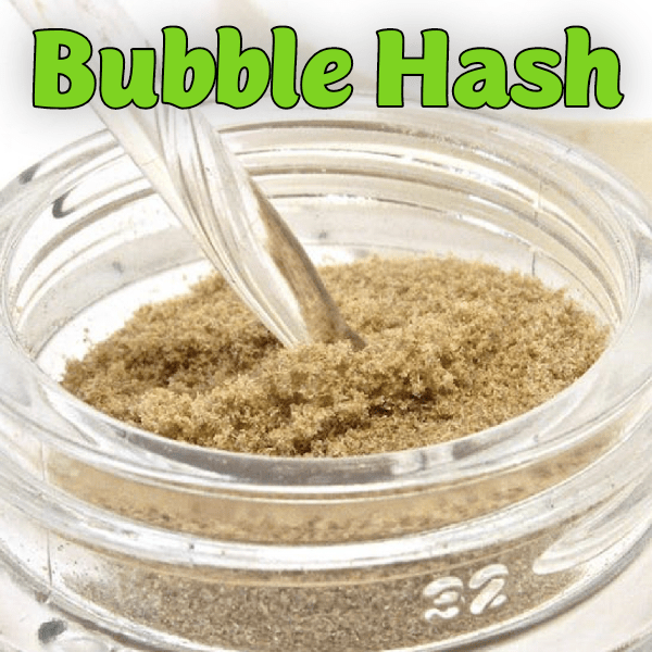 Bubble hash, also known as ice water hash, is created by placing cannabis buds in ice water, which freezes trichomes. The mixture is then stirred or agitated, breaking off the trichomes, and the resulting liquid is filtered through a series of fine screen bags.The resin is then collected and dried, and the product is bubble hash. Its appearance and texture can range between dry and chalky, to greasy and oily.