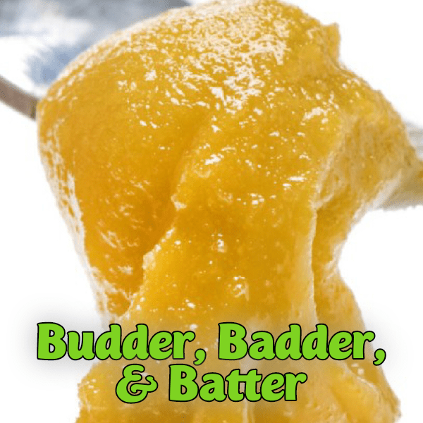 Budder, badder, and batter are all essentially the same type of concentrate, and all are extremely potent, but there can be small differences between them. Budder has this smooth, whipped consistency that’s a lot like… well, butter. Budder is known for its high potency, but may not always have a lot of aromatics due to extra heating used beyond the extraction point. Batter and badder are sometimes a bit less smooth; some can be more saucy and loose and some can even have a bumpier consistency.